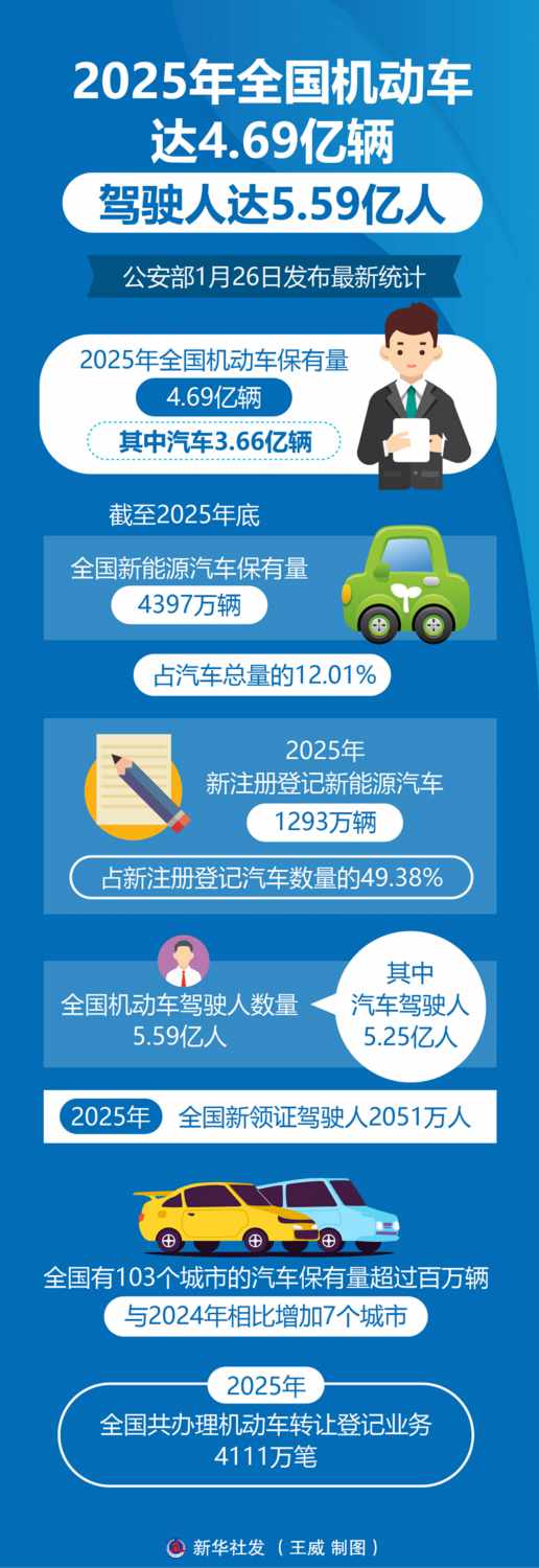 原标题:2025年全国机动车达4.69亿辆 驾驶人达5.59亿人
