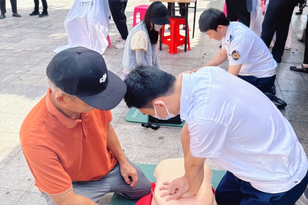 近日,三亚中心医院(海南省第三人民医院)急救中心与重症医学科6名男护士联合三亚市红十字会走进金鸡岭社区,开展“协同救护 应急有方”急救知识科普义诊活动。