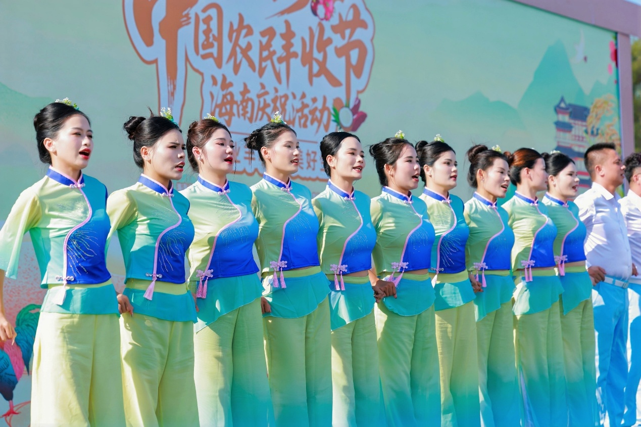 农民丰收歌会成功举办,整台演出洋溢浓郁乡土风情和丰收欢愉。开场节目《儋州有味庆丰年》融合舞狮、书法和农产品展示,农民代表手持海南特色农产品,道出充满自豪的丰收宣言。由本地农民组成的“蓝海浪乐队”用方言唱响儋州民歌串烧,真挚吟咏美好生活。压轴节目国家级非物质文化遗产——儋州调声将气氛推向高潮,五十人阵容载歌载舞,展现海南农民昂扬的精神面貌和乡村文化新活力。
