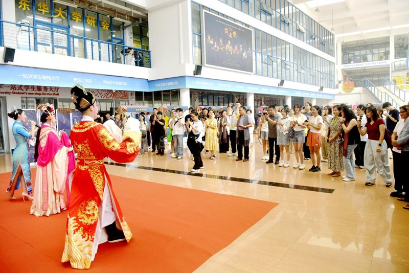 此次“文化远行”不止于展演,更注重文化传播交流,海南省琼剧院携手上海黄道婆纪念公园呈现“双非遗”联动,黎锦与乌泥泾棉纺同台,在东华大学,以非遗市集呼应校园演出,在温州戏剧节与多地剧种同台竞展,在徐汇社区开展科普互动,形成“戏剧+非遗+科普+体验”的立体模式,实现“剧场走向街巷”的落地实践,共同织就新时代的文化叙事。杨济铭院长表示:“戏曲不应只停留在剧场,而要走进生活。”