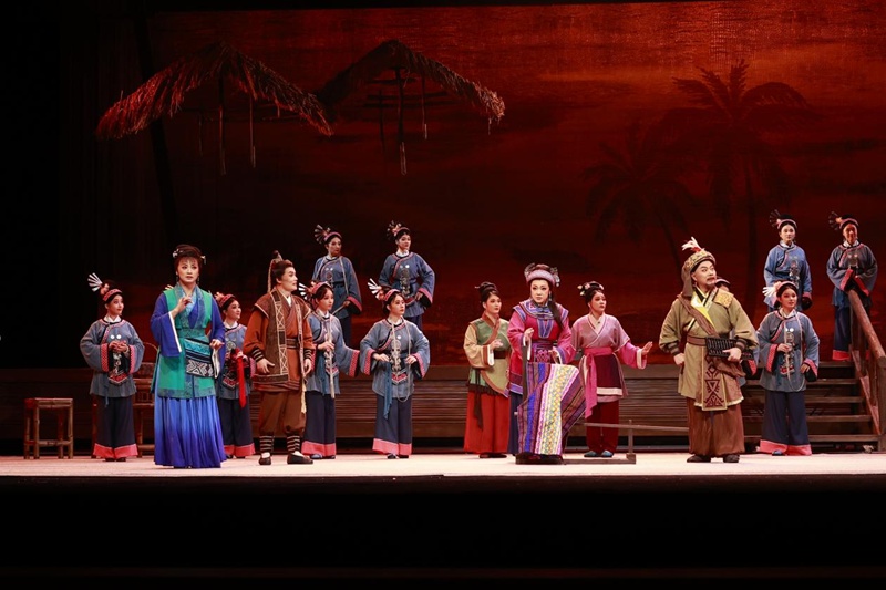 琼剧改编陈艺天感慨,剧本十易其稿,采风团队深入乐东乡野,向黎锦传承人学习织唱。
