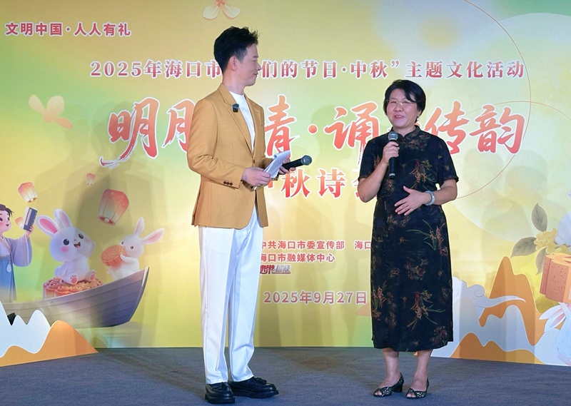 人民网海口9月28日电(记者毛雷)以诗会友,以“乐”传情……9月27日晚,“我们的节日·中秋”主题文化活动——“明月寄情·诵声传韵”中秋诗会在海口启幕。