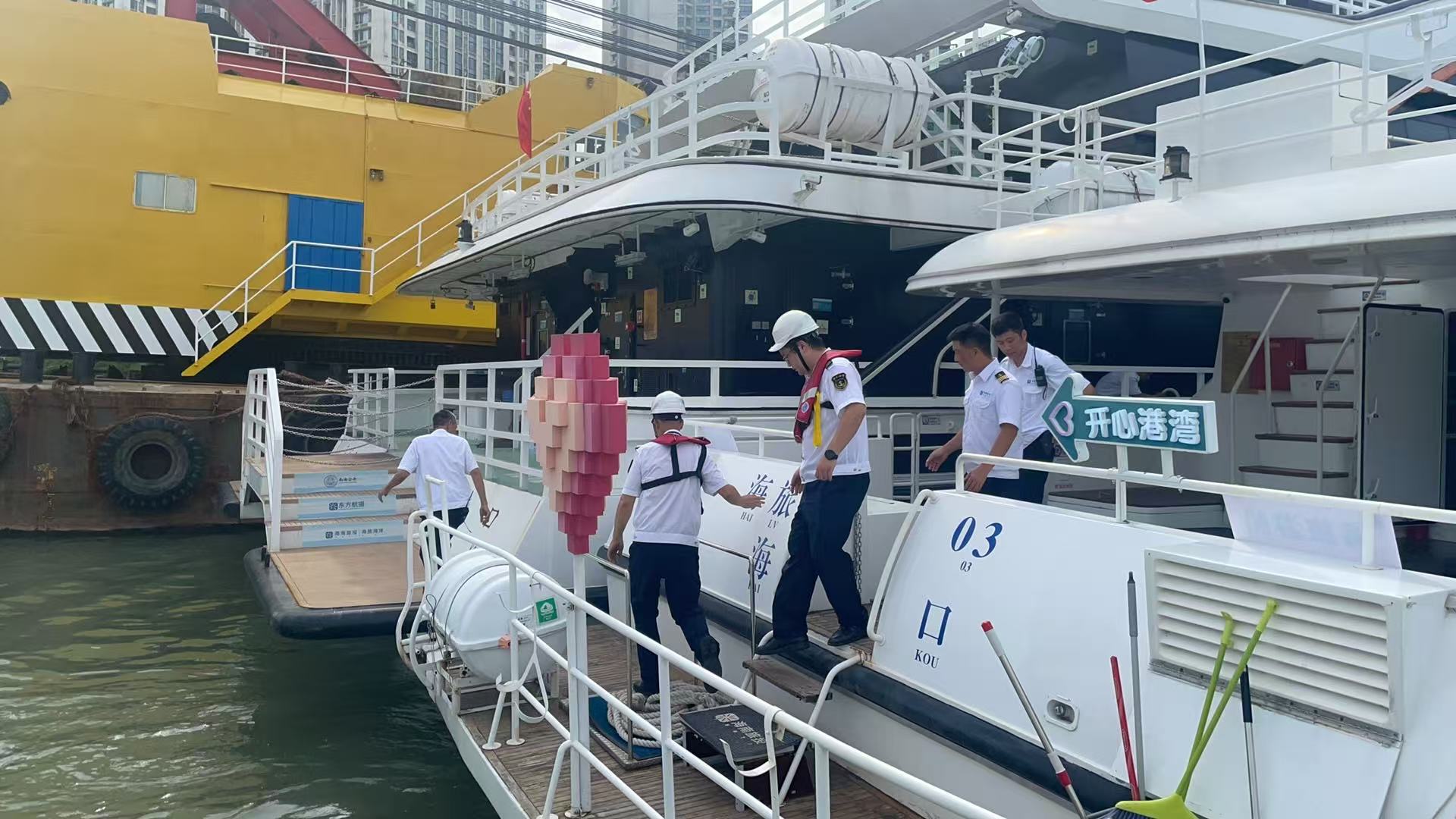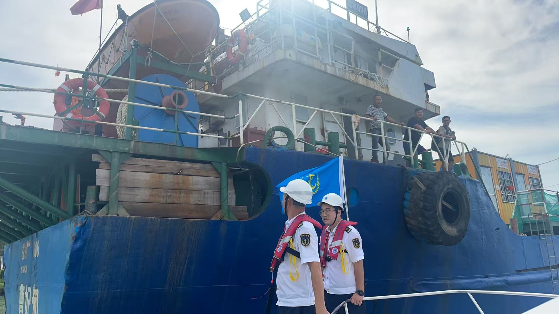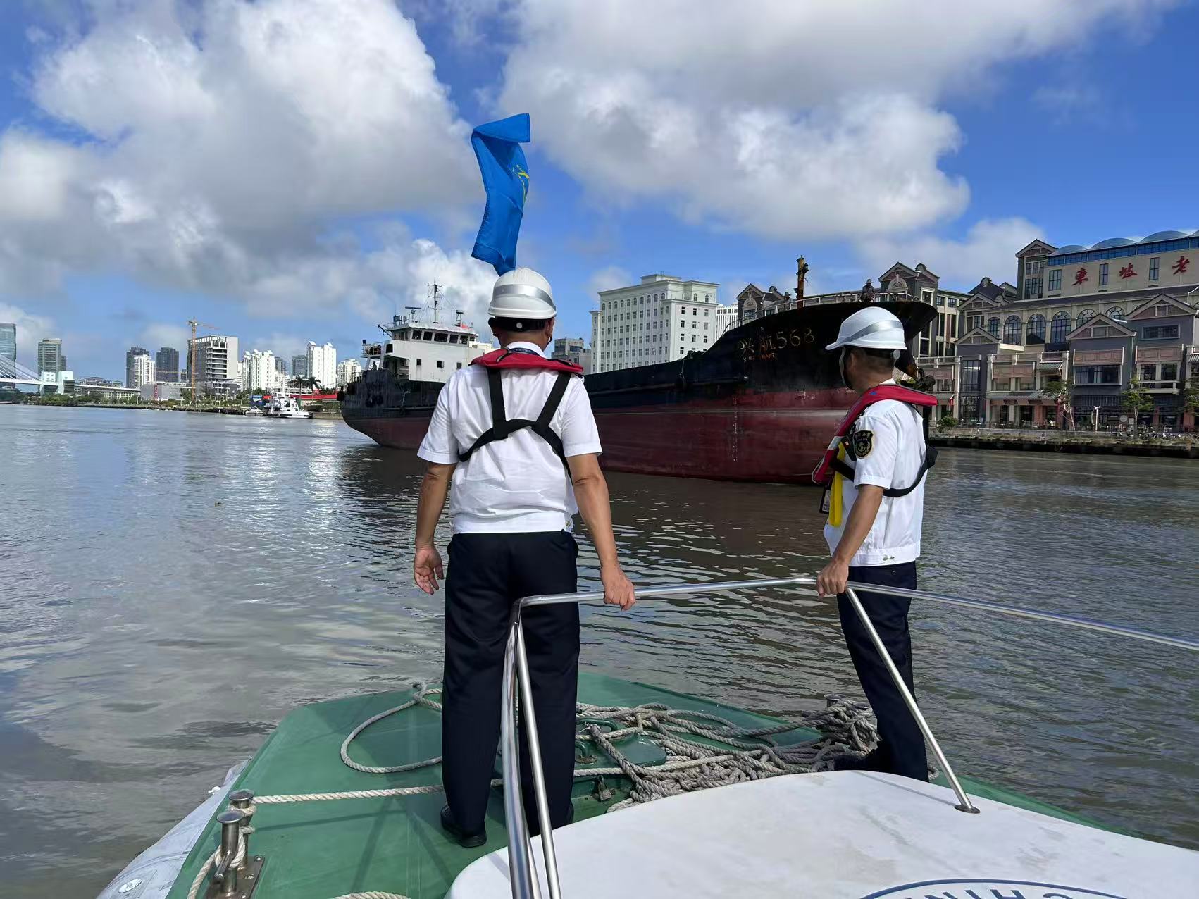 海口海事局迅速启动防台锚地人员撤离应急行动,派出“海巡11106”轮开展人员撤离工作,海事执法人员实行拉网式排查,逐船摸排,坚决执行人员撤离要求,做到所有防台船舶“应撤尽撤”,确保“不落一人,不漏一船”。