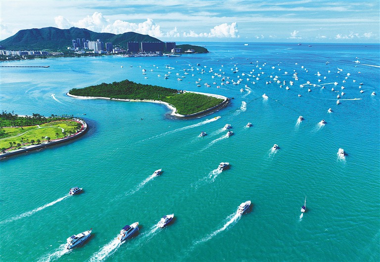 假日期间,三亚众多游客选择乘坐游艇享受休闲时光。海南日报全媒体记者 王程龙 摄
