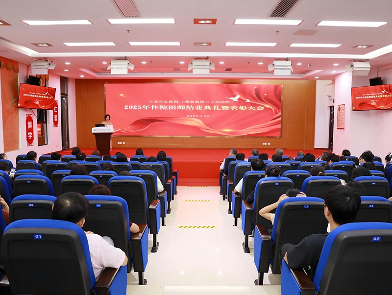 9月29日,三亚中心医院(海南省第三人民医院)隆重举行2025年住院医师结业典礼暨表彰大会。大会以“医路漫漫、初心不改,以梦为马、不负韶华”为核心主题,不仅为2022级住院医师规范化培训阶段圆满收官,更通过表彰先进、传递期望,为住院医师的职业征程注入新动力。医院领导班子成员、各专业基地负责人及全体住院医师等共同见证了这一重要时刻。