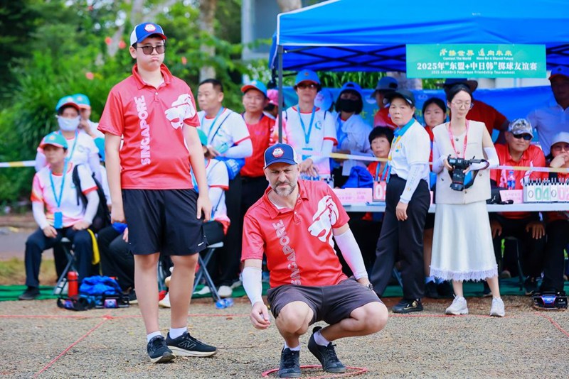 人民网澄迈10月16日电 (记者李学山)10 月 15 日至 19 日,由海南省旅游和文化广电体育厅主办的2025年 “东盟 + 中日韩” 掷球友谊赛在海南澄迈福山咖啡文化风情镇4A级景区盛大举行。本次赛事吸引了94支队伍的306人参加赛事活动,外籍选手共46人,是亚洲掷球领域一次重要的国际交流盛会。