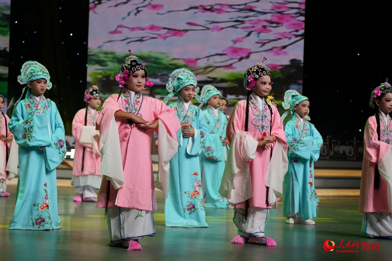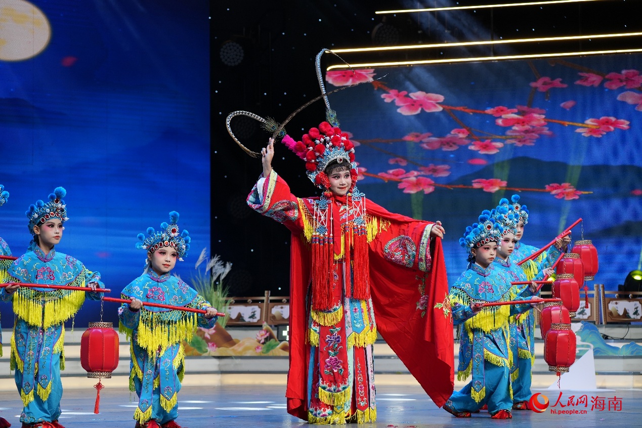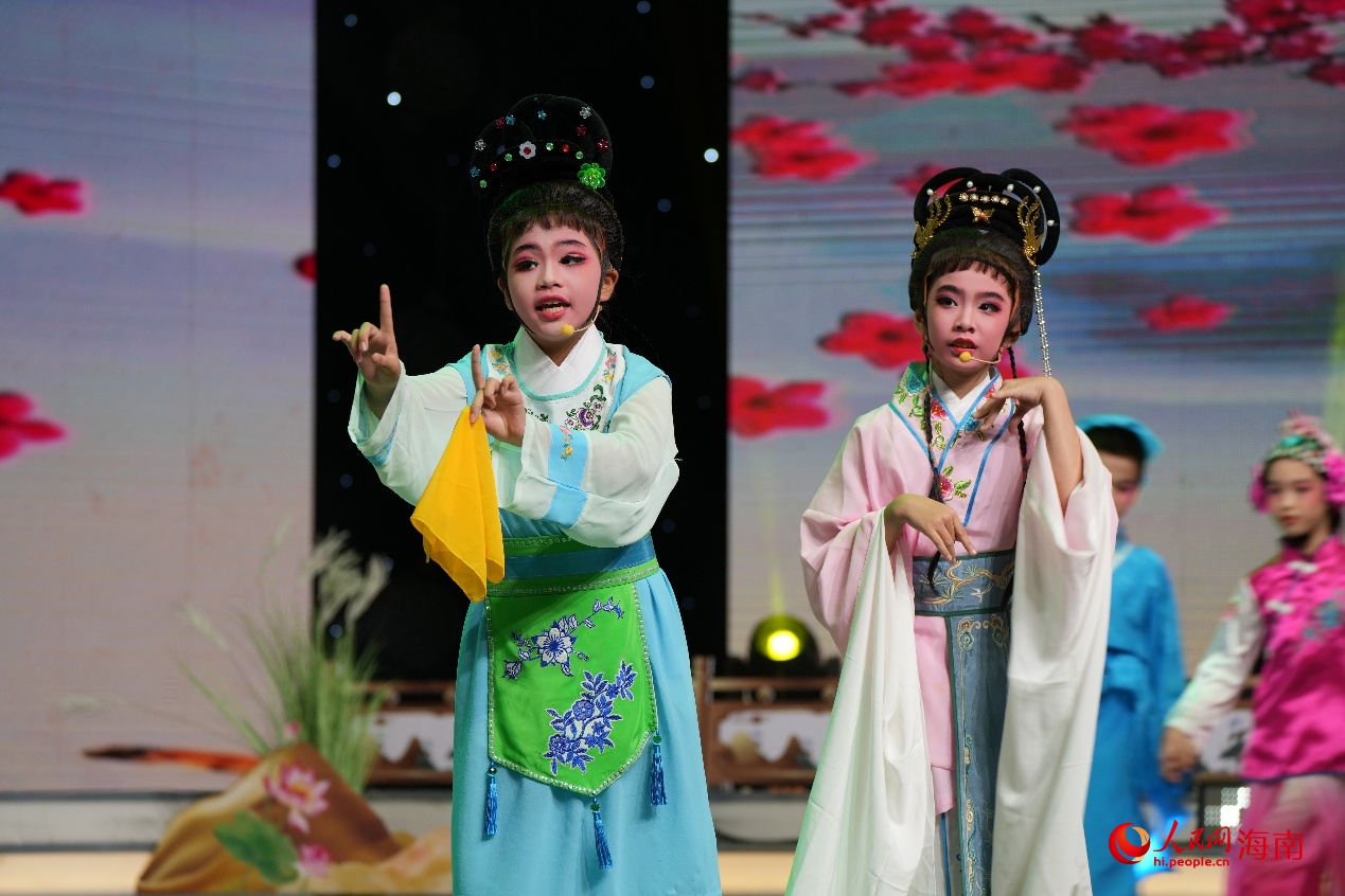 晚会现场,来自海口市大致坡镇中心小学、海口市灵山镇中心学校的同学们带来的古诗词琼剧戏歌《戏腔吟古调•三绝忆诗情》和《山村新巧缘》,让观众看到了琼剧在校园里的勃勃生机。