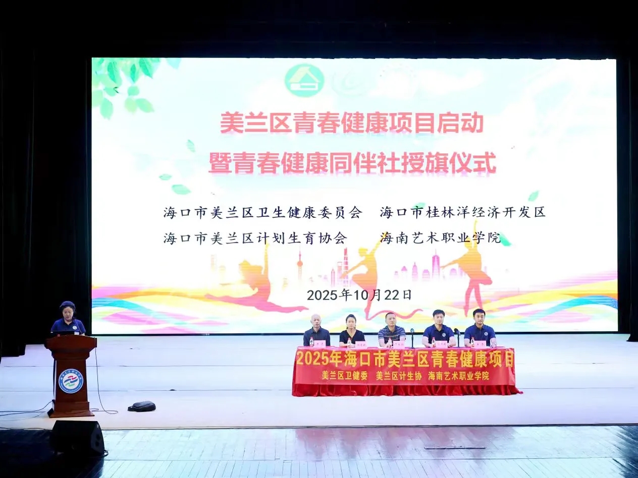 10月22日下午,由海口市美兰区卫健委、美兰区计划生育协会联合海南艺术职业学院共同举办的“美兰区青春健康项目启动仪式暨青春健康同伴社授旗仪式”在海南艺术职业学院实训剧场内隆重举行。本次活动吸引了该校16个班级的271名学生积极参与。