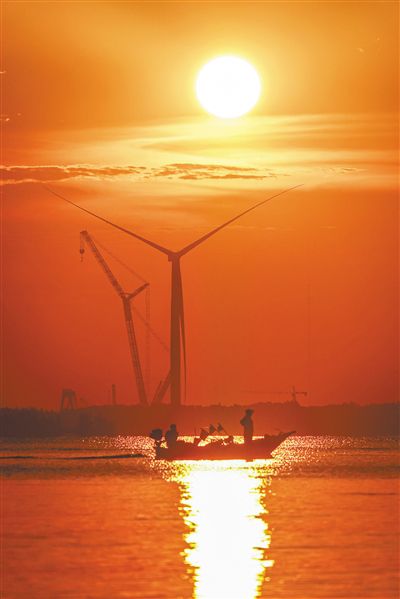 海南加快能源基础设施提质升级,推进清洁能源岛建设。图为明阳(临高)大型海上风电机组检测试验基地。