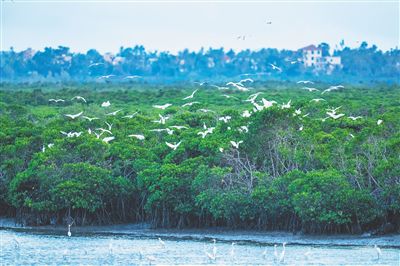 栖息在海南东寨港国家级自然保护区的鹭鸟。