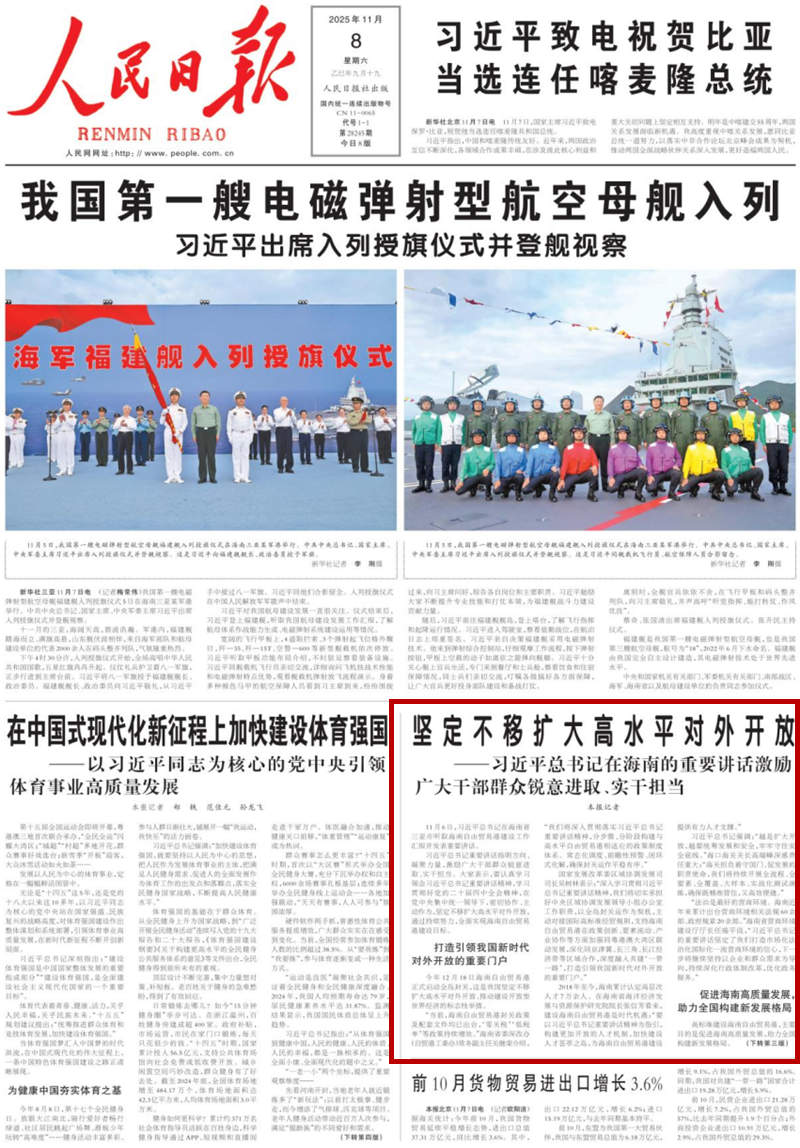 今年12月18日海南自由贸易港正式启动全岛封关,这是我国坚定不移扩大高水平对外开放、推动建设开放型世界经济的标志性举措。