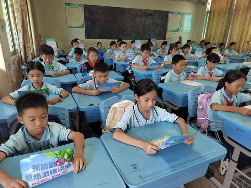 育才生态区联合中小学开展“小手拉大手”活动,发放3000余份《防酗酒家长告知书》。育才生态区宣统部供图