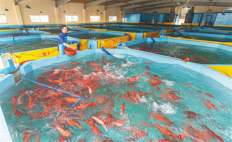 冯家湾现代化渔业产业园凭借政策扶持、技术赋能与模式创新,吸引了众多养殖户采取自建多层养殖厂房模式入园,并累计引进55家企业和科研院所。园区养殖设施平面用地利用率从常规的50%提高到85%以上,鱼虾苗成活率高达90%以上,养殖周期缩短20%以上。截至目前,园区累计带动就业约1.1万人次。海南日报全媒体记者 袁琛 摄