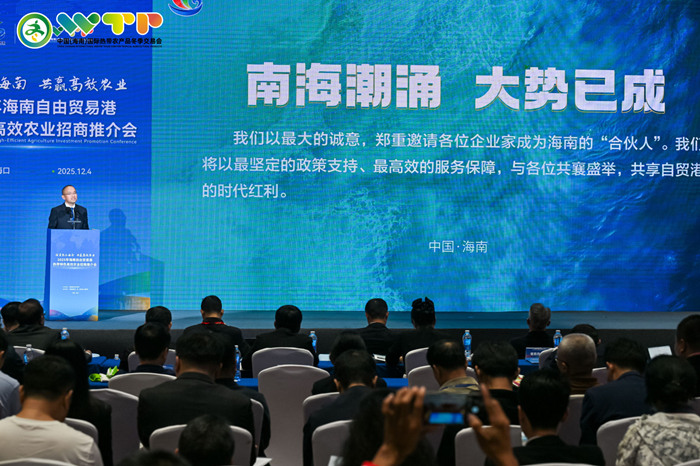 人民网海口12月4日电 (记者李学山、符武平)12月4日下午,在海南自贸港全岛封关运作进入倒计时的关键阶段,借助2025年中国(海南)国际热带农产品冬季交易会(简称“冬交会”)举办之机,2025年海南自由贸易港热带特色高效农业投资洽谈活动在海口成功举行。来自全球投资者、国内外农业龙头企业、重点行业协会代表及政府相关部门负责人齐聚一堂,共商合作、共谋发展,共同推动海南热带特色高效农业产业合作迈上新台阶。