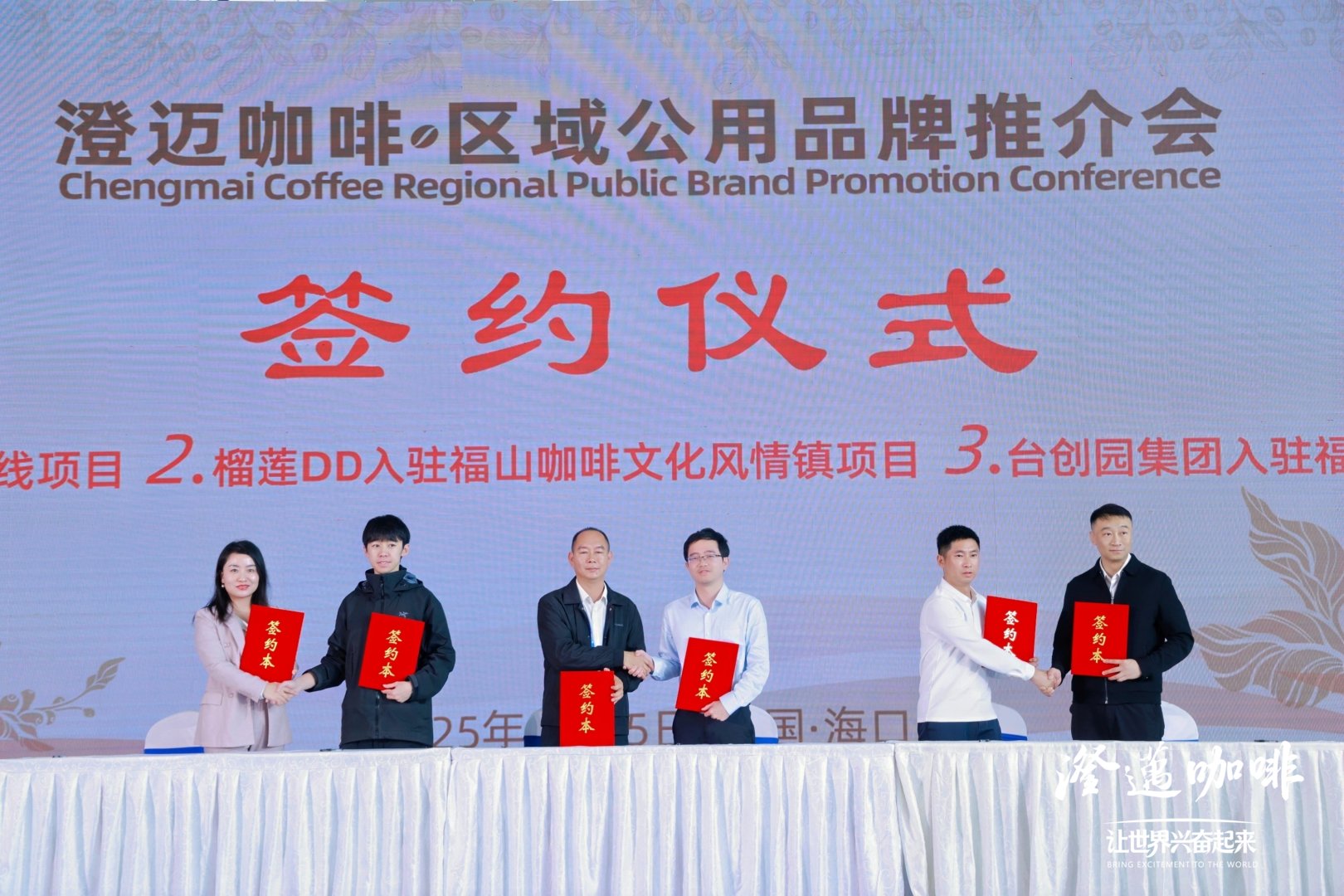 本次推介会内容丰富、亮点纷呈。澄迈福山咖啡文化风情镇管委会、海南乐乡时代农业科技开发有限公司、澄迈福山发展有限公司、澄迈远丰实业有限公司等代表分别进行品牌推介和经验分享。会上还进行了三个项目的签约,分别为咖啡鲜果脱皮脱胶生产线项目、榴莲DD入驻福山咖啡文化风情镇项目、台创园集团入驻福山咖啡文化风情镇项目,这些项目的落地,将为澄迈咖啡区域公用品牌注入强劲发展动力。