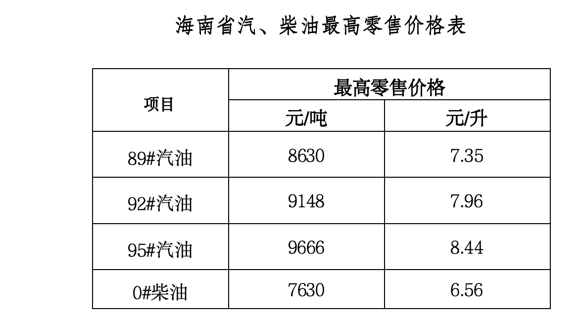 人民网海口12月8日电 (记者孟凡盛)根据国家发展改革委官网新闻发布中心2025年12月8日公布的国内成品油价格调价信息,国内汽、柴油价格(标准品)每吨分别下调55元和55元。海南省发展改革委按照现行成品油价格形成机制调整海南省汽、柴油最高零售价格,自2025年12月8日24时起执行。