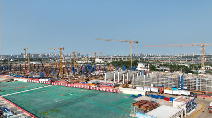 回望建设历程,是一场与极端条件抗争、与技术极限较量、与时间赛跑的艰苦鏖战。项目原址为一片由上百个深浅不一鱼塘构成的沼泽,其下是深达1.5至2米的流塑性淤泥层,地基承载力几乎为零,堪比在“豆腐脑”上搞建设。为攻克地质难题,项目团队率先展开“乾坤大挪移”,抽排近200万立方米积水、回填160万立方米土方,让泥泞沼泽初见雏形。针对软土地基成桩难题,创新应用复杂地质条件下等芯水泥土劲性复合桩施工技术,成功解决了5000多根桩基在软土地质中的成桩质量和效率难题,为后续工程打下了“金钟罩”般的绿色地基。