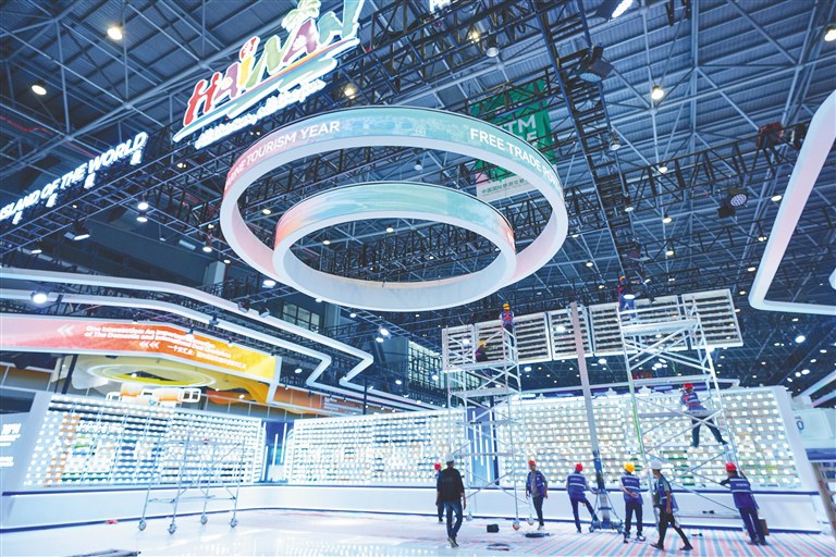 12月17日,布展现场一派繁忙景象,各大展馆主体结构已成形,工人们正进行最后的装饰与调试。海南日报全媒体记者穿梭于初具雏形的各个展区,提前为您全景式剧透这场文旅盛会的两大核心看点——在这里,既能深度领略海南“世界度假岛”的崭新风貌,又能一站式饱览世界各地文旅的绚烂风采。
