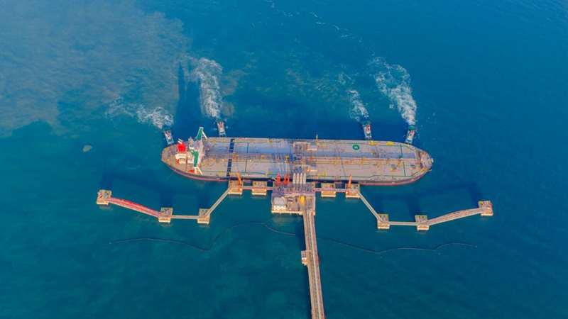 石化原辅料的船舶靠泊国投洋浦油储码头。邓晓龙摄
