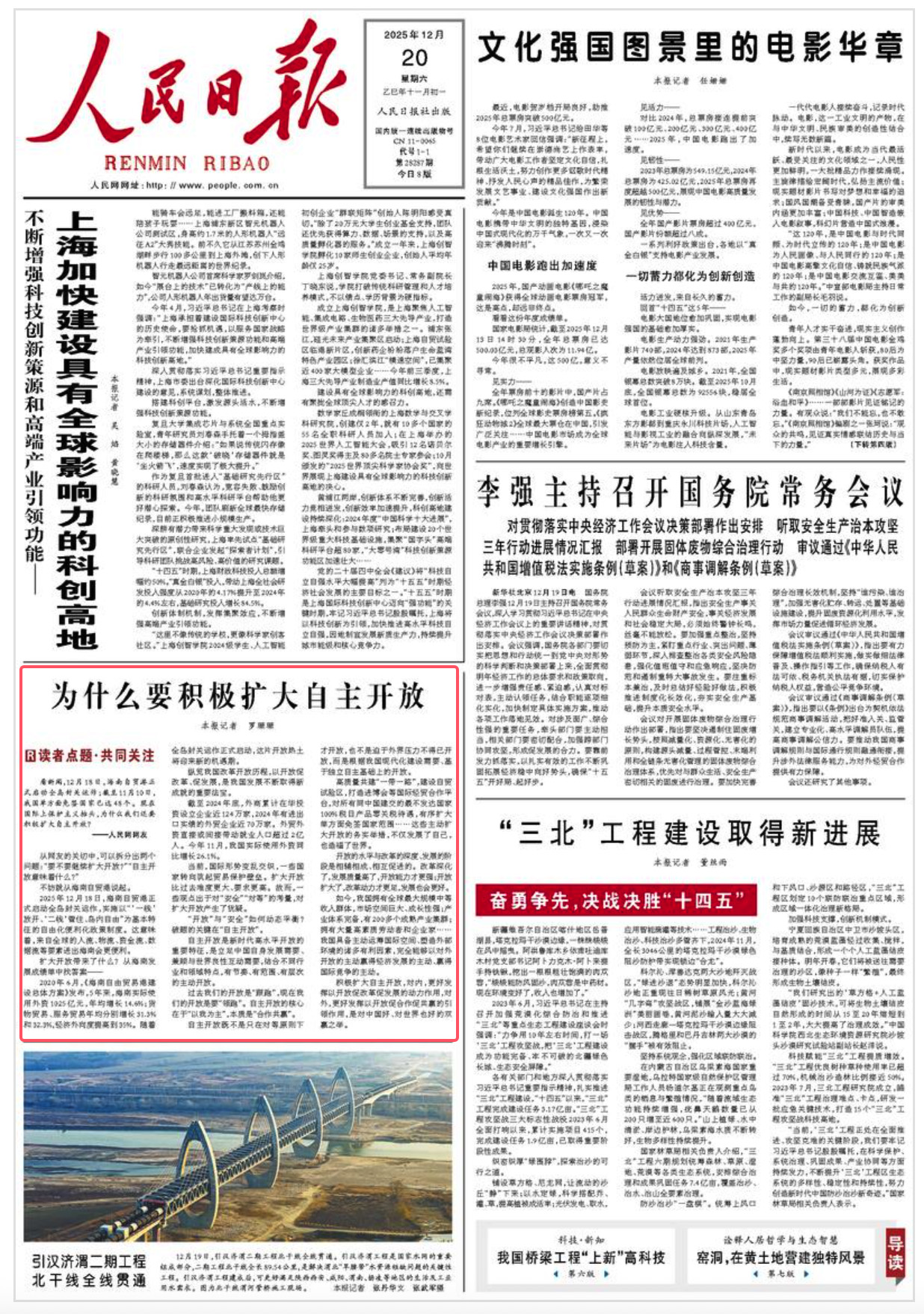 《 人民日报 》( 2025年12月20日 第 01 版)