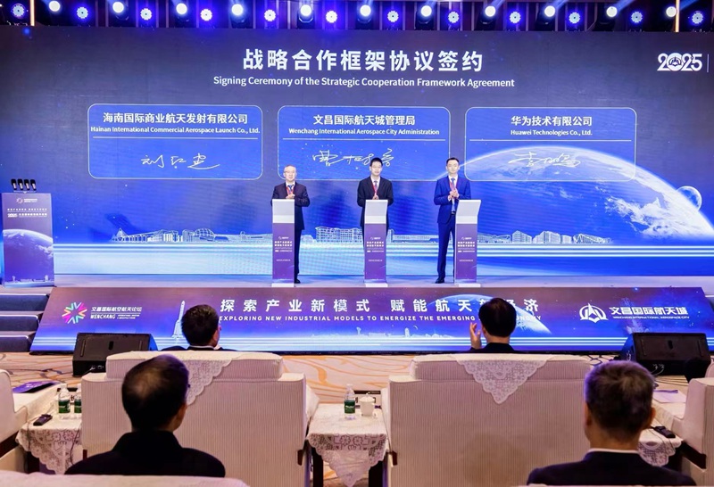 文昌国际航天城管理局与海南国际商业航天发射有限公司、华为技术有限公司就航天产业数智化创新发展内容签约。主办方供图