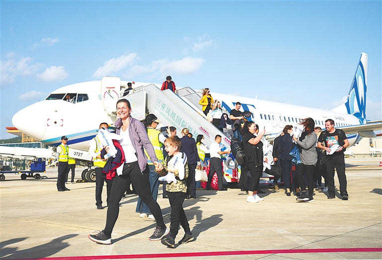 12月22日16时06分,首批第七航权航班旅客从捷克布拉格飞抵三亚。