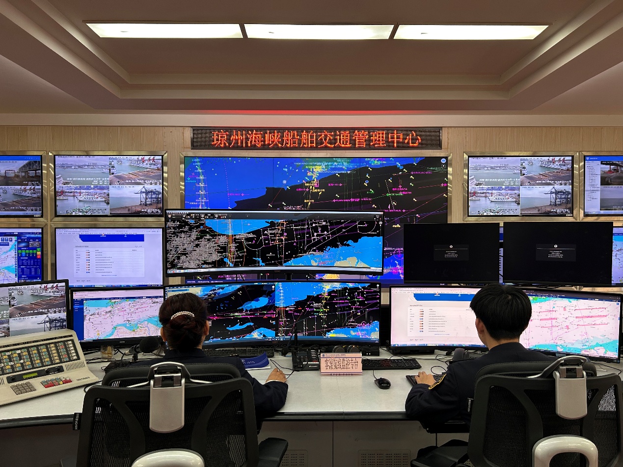 海事执法人员实时监控琼州海峡船舶动态。海口海事局供图