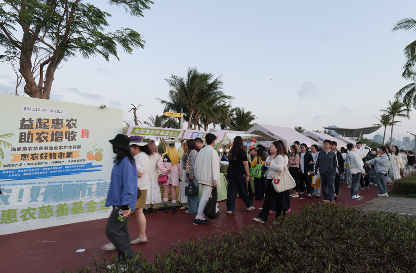 人民网海口1月4日电(记者 李学山)元旦假日期间,由海南省农业农村厅、海南省乡村振兴局、海南省供销合作联社指导,海南惠农慈善基金会联合海南农信三农社区义工服务社主办的“惠农好物市集”在海口云洞图书馆滨海草坪火热开市,吸引大量市民游客驻足选购,现场人流如织、烟火气十足。