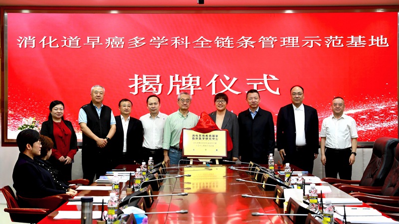 仪式上,双方领导共同为“消化道早癌多学科全链条管理示范基地”揭牌。