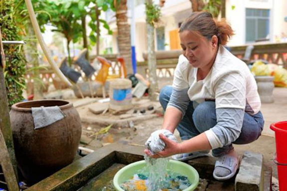 黄美政清洗衣物。育才生态区宣传统战部供图