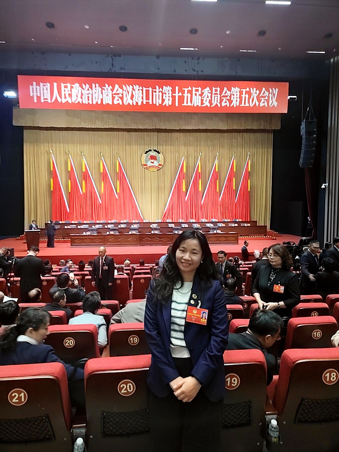 苏文贞委员在海口市政协十五届五次会议现场。受访者供图