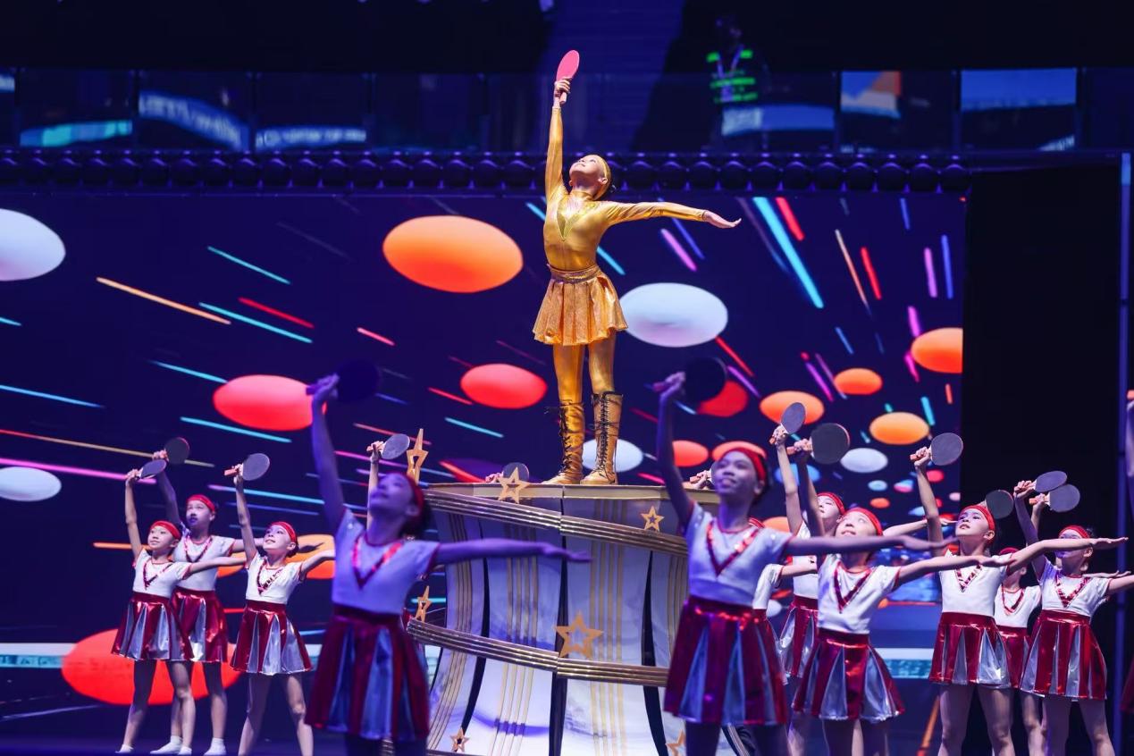 开幕式现场还上演了一场融合乒乓元素与海南本土文化特色的文艺表演。椰风海韵与动感节奏交织,传统黎苗歌舞与现代舞台科技相融,生动展现了海口作为自贸港核心引领区的开放气质与文化魅力,为这场国际体育盛事拉开精彩序幕。