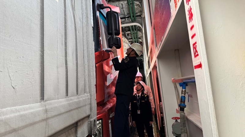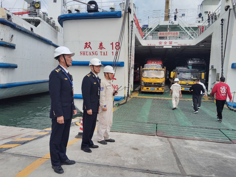 海事执法人员现场保障运输秩序。海口海事局供图