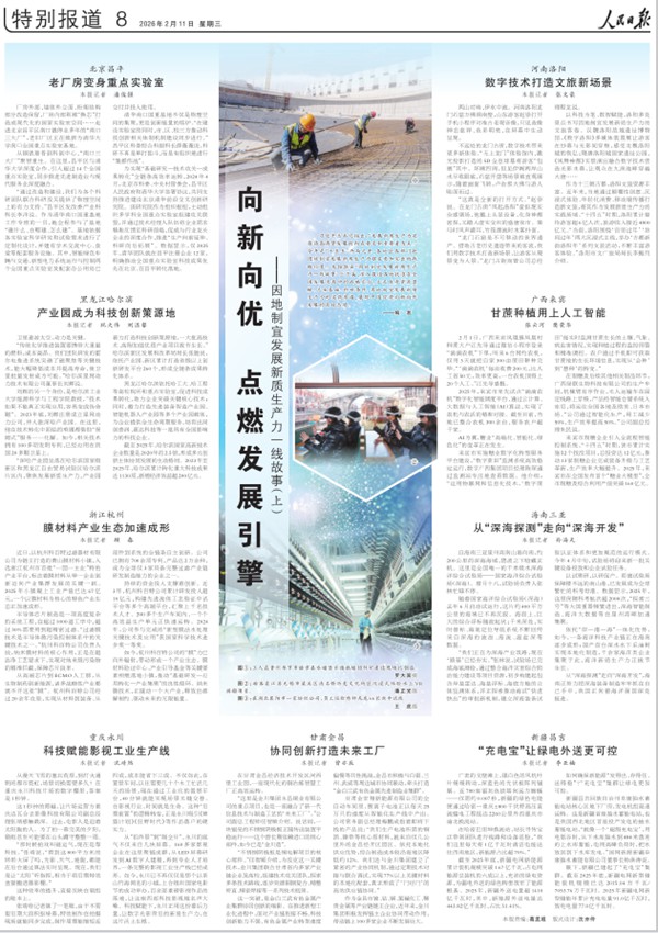 习近平总书记指出:“发展新质生产力是推动高质量发展的内在要求和重要着力点。”今年是“十五五”开局之年,各地区各部门把因地制宜发展新质生产力摆在更加突出的战略位置。本报推出“因地制宜发展新质生产力一线故事”上下篇,深入报道各地找准在全国发展大局中的战略定位,立足自身资源禀赋、产业基础、科研条件,因地制宜发展新质生产力的实践举措,展现中国经济向新向优发展的良好态势。