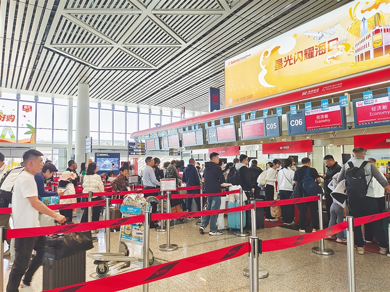 旅客在海口美兰国际机场办理乘机手续。海南日报全媒体记者 邓海宁摄