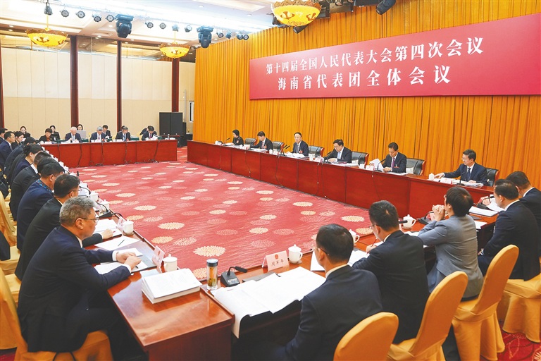 3月5日下午,十四届全国人大四次会议海南代表团在住地举行全体会议,审议政府工作报告。