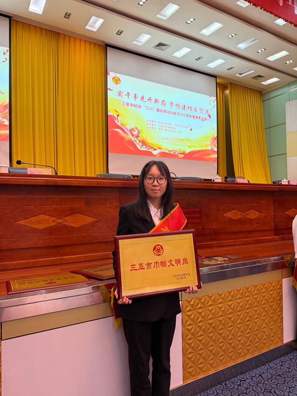 崖州区营商环境建设局无差别综合服务窗口获三亚市巾帼文明岗称号。崖州区营商环境建设局供图