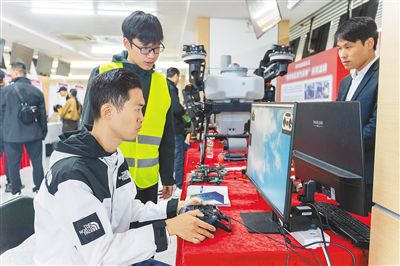图为求职者在进行无人机飞手测试。