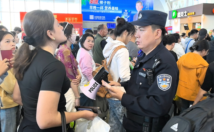 春节期间,为提升旅客出行体验,海口东站派出所积极推动“枫桥经验进车站”,不断优化志愿服务,为旅客提供问询、引导、急救等服务,助力旅客顺利出行。民警还通过开展“反诈小课堂”、发放反诈宣传品等形式,提高旅客安全意识,实现了预防为主的目标。