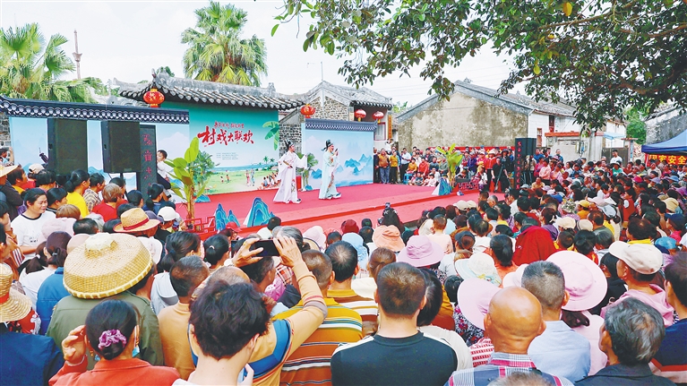 3月14日,由海南省旅游和文化广电体育厅主办的“文艺赋美 琼音回响——村戏大联欢”第三场活动在定安县龙湖镇高林村举行。当天,除精彩琼剧演出外,现场还设置“寻戏之旅打卡计划”和趣味问答环节,将张岳崧故居、张氏宗祠等人文景观与演出戏台串联,吸引观众踊跃参与。海南日报全媒体记者 张茂 通讯员 程守满 图/文