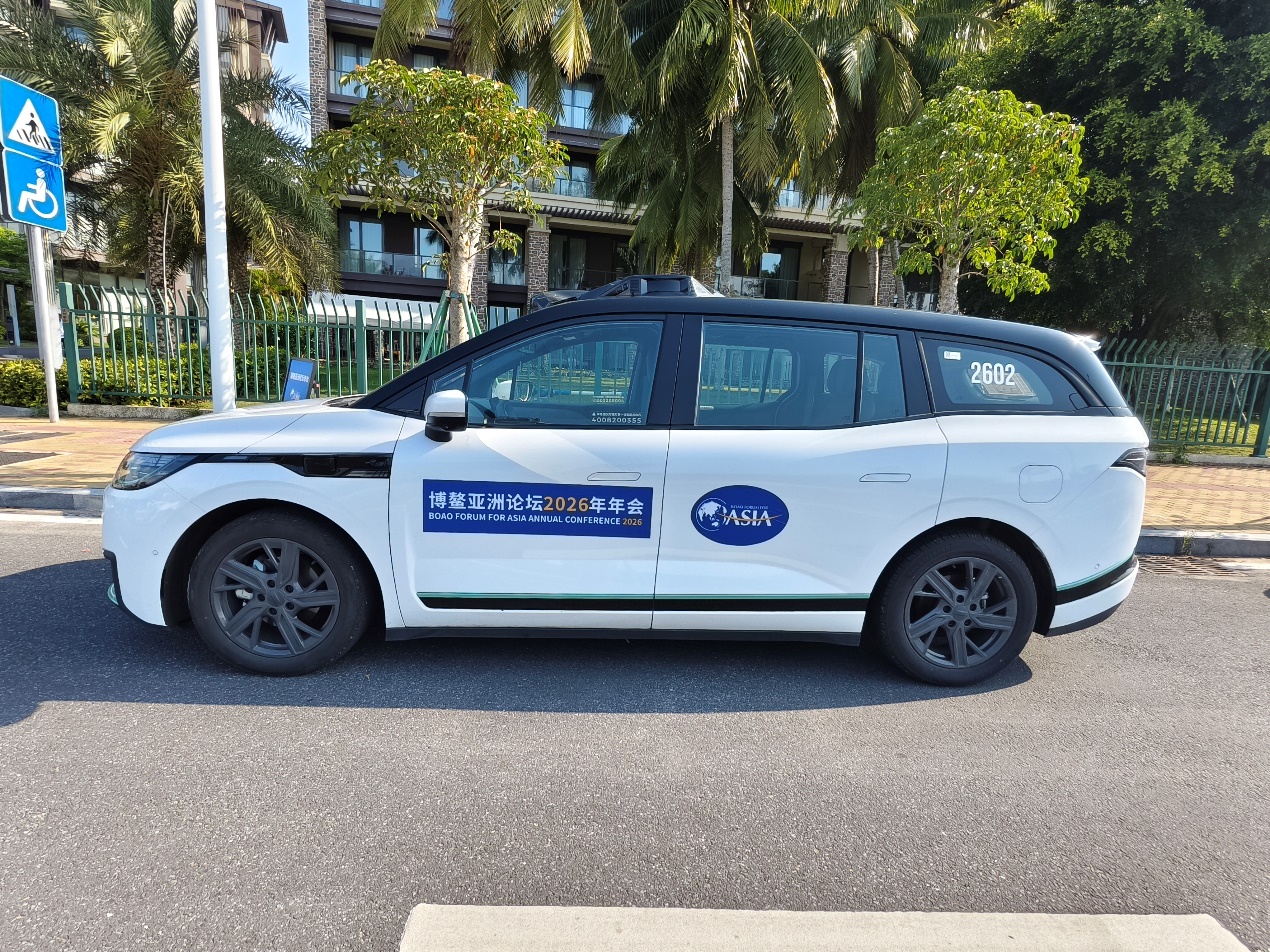 收藏人民网博鳌3月25日电 3月24日上午,一辆贴有“博鳌亚洲论坛2026年年会”标识的白色汽车平稳行驶在博鳌滨海大道上。方向盘自动转动,车辆灵活汇入车流——驾驶座上却空无一人。这是海南省旅游投资集团有限公司(以下简称“海南旅投”)为今年年会特别配置的无人驾驶接驳车。