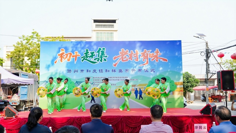 上午9时许,开市仪式在客家山歌舞蹈《幺妹住在十三寨》中拉开序幕。伴随三声铿锵铜锣,“和祥集市,正式开市!”现场掌声四起,气氛热烈。