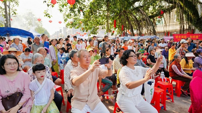 据介绍,和祥村地处儋州、临高、澄迈三地交界,是琼西客家聚居的核心村落之一。自晚清至民国时期,这里便依托邻近的“和庆墟”形成“墟下村市”,每逢墟期,村民自发摆卖稻米、家禽、竹编等物产,周边三地商贩也前来交易,常年市声不断。其中,尤以“大年初十迎春祈福”之日最为热闹,这一民俗传承已久,“初十”逐渐成为和祥人心中约定俗成的“村集日”。