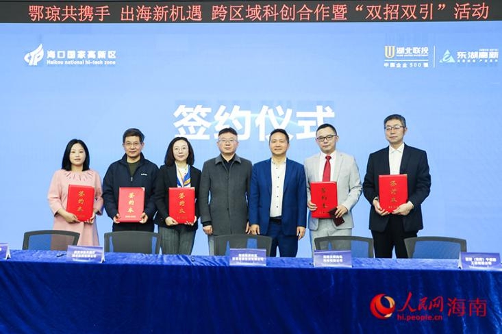 经过海口国家高新区工委、武汉东湖高新区工委高效联动,以“鄂琼共携手 出海新机遇”为主题的海南自由贸易港政策宣传推介会(武汉)专场活动在湖北联投东湖高新集团于3月27日举行,海口国家高新区与东湖高新创新研究院、湖北光谷实验室展开深度交流合作,两家“科创人才飞地”正式揭牌成立。