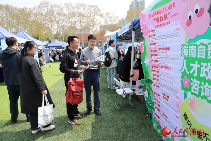 武汉大学学子现场了解海南自贸港人才相关政策和发展前景。人民网记者 牛良玉摄