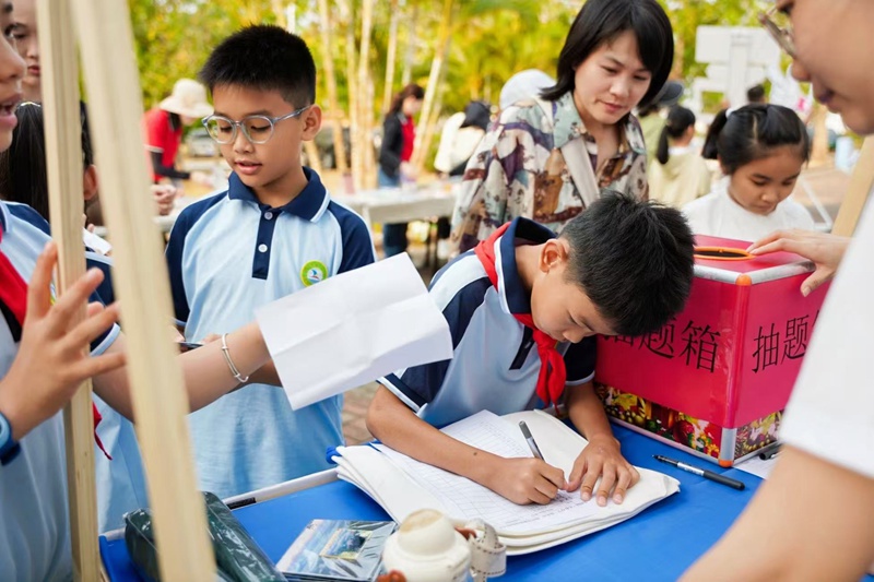 启动仪式现场还打造了丰富的互动体验区。在打卡互动环节,阅读成果展、冲浪主题书香打卡墙、AI机器人体验区吸引了众多师生和家长参与;创建国家文明城市、“扫黄打非”、国防教育、国家安全教育及网络安全知识竞答等多个摊位,让市民在趣味互动中收获知识的同时,还能领取图书兑换券、创文伴手礼等福利。