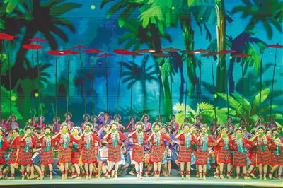 主会场开幕式文艺演出通过歌舞、情景表演等形式,以海南自由贸易港建设一线奋斗者的故事为原型,将海南聚焦“五向图强”打造新质生产力重要实践地等内容融入舞台叙事,艺术化呈现各族儿女在推动海南自由贸易港建设中的担当与奉献,勾勒出海南各民族交往交流交融、同心奋斗的时代图景。