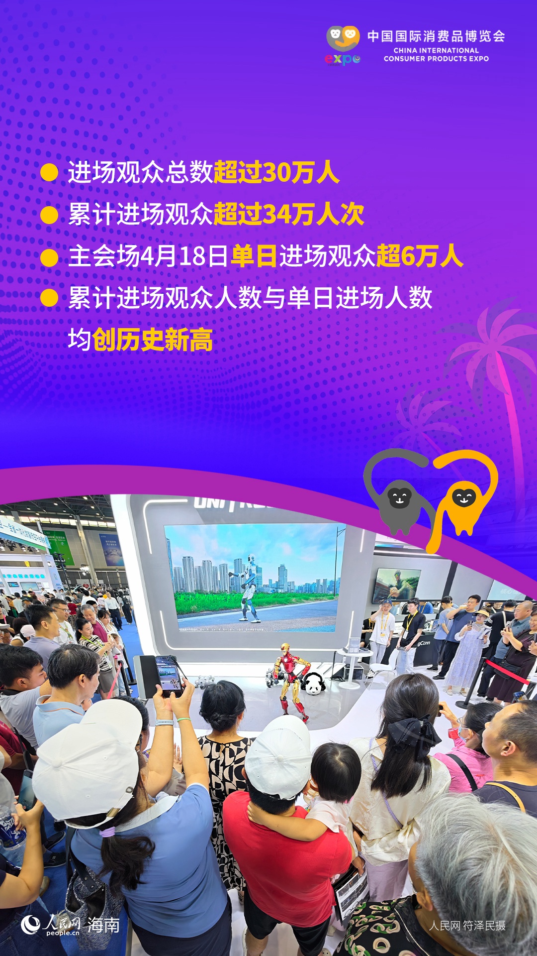 收藏一扇窗口联通内外 一场盛会拥抱世界。4月13日至18日,以“开放引领全球消费,创新驱动美好生活”为主题的第六届中国国际消费品博览会在海南举行。本届消博会是2025年12月海南自贸港启动全岛封关运作以来的“首展”,也是今年中国重大外贸展会的“首展”。一组数据看本届消博会亮眼成绩!