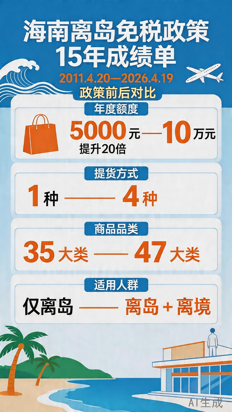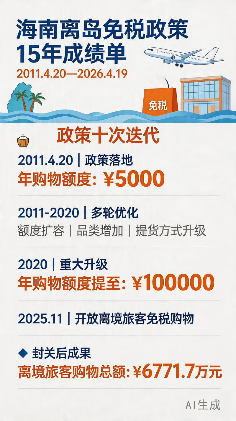 15载砥砺深耕,10次政策迭代升级。自2011年4月20日海南离岛免税政策正式落地,政策不断优化、成果持续凸显。一组图片带您直观了解海南离岛免税15年的发展变化,见证政策赋能自贸港开放的具体历程。