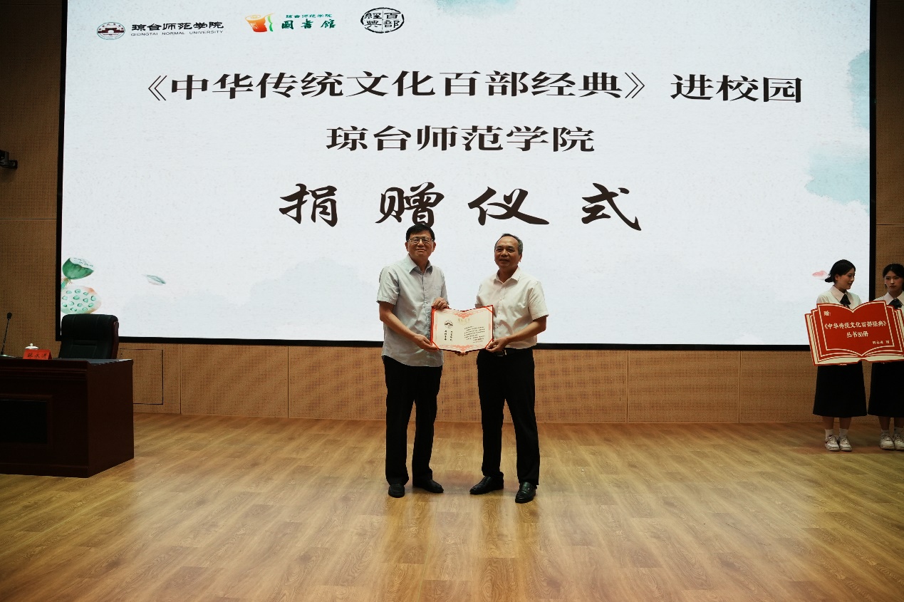 《中华传统文化百部经典》是中共中央宣传部委托文化和旅游部指导国家图书馆组织编纂的典籍普及丛书,系中华优秀传统文化传承发展工程重点项目。本次活动既是国家级文化宝藏下沉基层、赋能地方高等教育、服务青年成长成才的生动实践,更是三百年琼台学脉与中华传世典籍的深度交融。